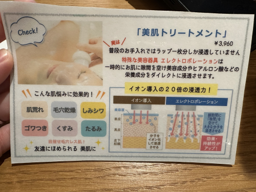 特殊な美容器具エレクトロポレーションを使い、栄養成分をより深くまで浸透させ美肌にさせます